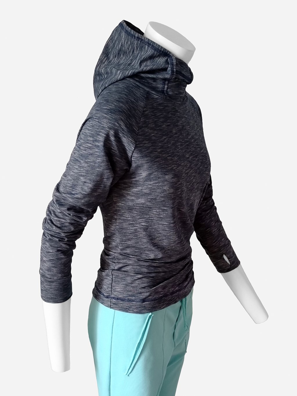 - kapuce není velká je konstruovaná tak, aby se dala použít při nečase při běhu nebo procházce, ale jinak je spíše myšlena jako ležérní spadený roláček, který triku dodá šmrnc