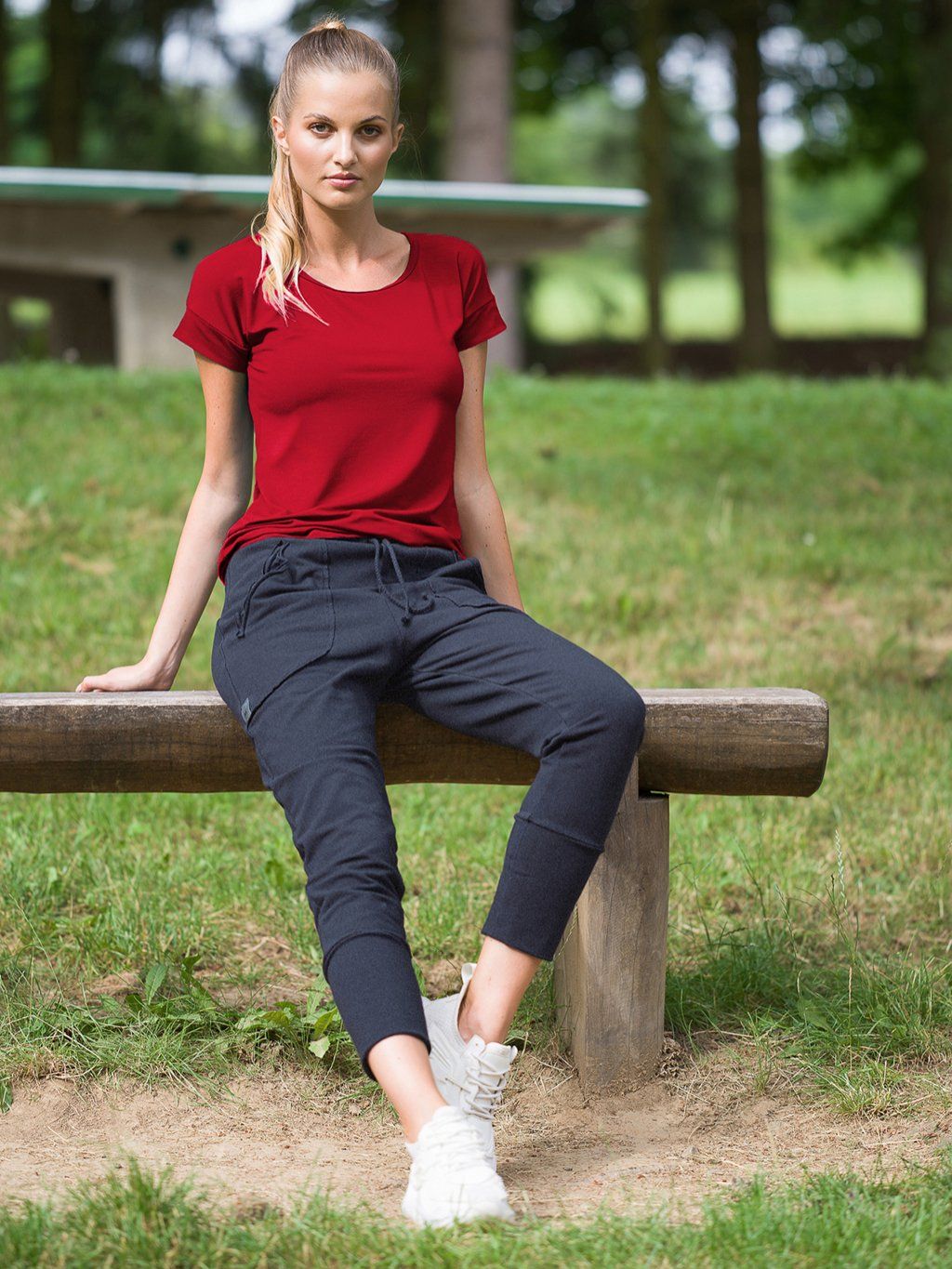 Top můžete kombinovat s dámskými sportovními kalhotami, legíny, kraťasy a sukněmi.
